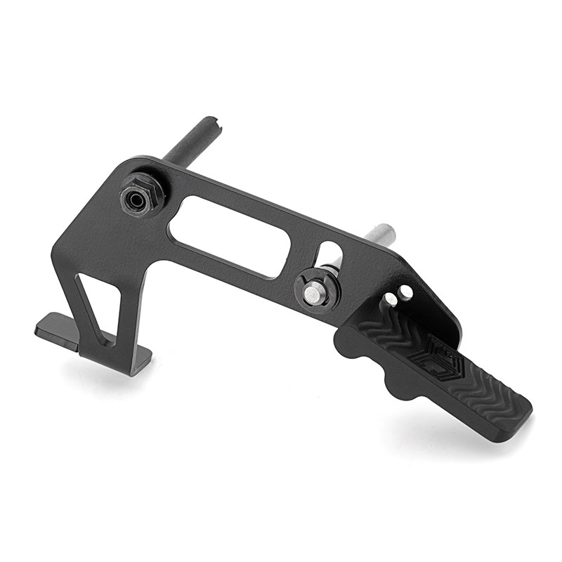 Спортсмен с установленным устройством Ryde извлекает магазин нажатием на кнопку сброса большим пальцем правой руки. В это время можно сразу доставать новый магазин из подсумка и не отвлекаться на отсоединение пустого левой рукой.