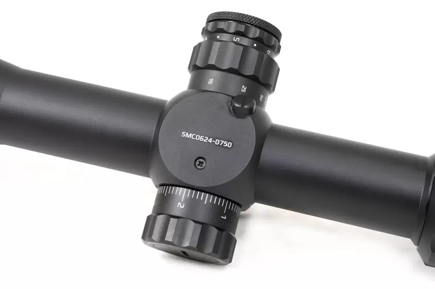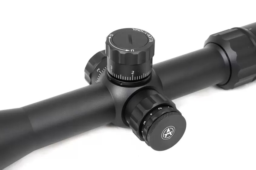 Для внесения изменений в положение прицельной сетки прицел оснащен тактическими турелями ввода поправок с ценой клика 0,1 MRAD. Также имеются функции обнуления и быстрого возврата к нулю ZeroStop. Запас хода прицельной сетки на дальность и силу ветра составляет 17,5 MIL.