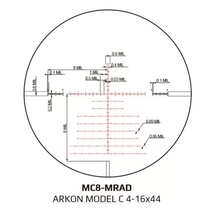 Оптический прицел Arkon Model C 4-16x44 имеет следующие характеристики: