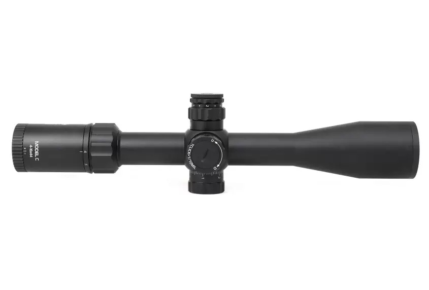 Качественная оптика с фирменным просветлением FMC предоставляет предельно четкое и контрастное изображение цели даже на максимальной кратности. Светосильный объектив 50 мм позволяет эффективно применять прицел даже при слабом сумеречном освещении. Оптического увеличения в пределах от 4 до 16 крат вполне достаточно для комфортной работы по малогабаритным целям на средних и дальних дистанциях. Угол пространственного поля зрения на минимальной кратности равен 5°, что обеспечивает видимость области пространства шириной 45 метров на отдалении в один километр. Удаление выходного зрачка находится на безопасном расстоянии (87 - 80 мм) для стрельбы крупным калибром.