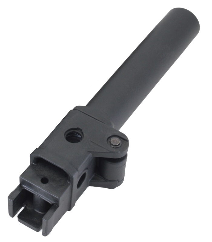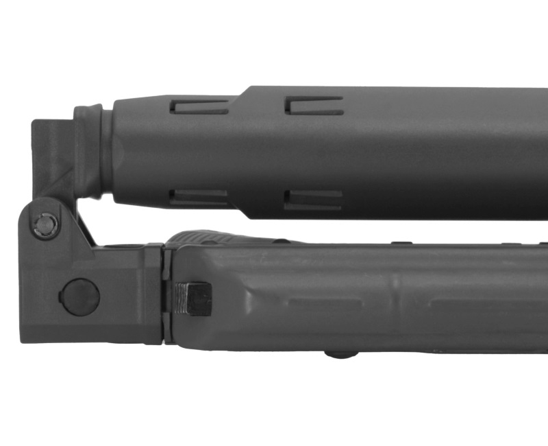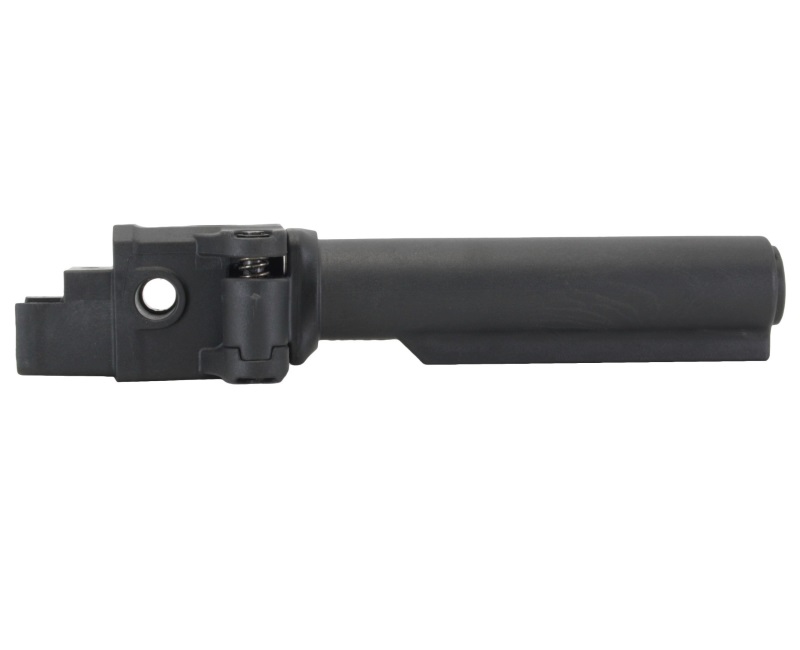 Труба приклада АК имеет складной узел. Он приводится в действие после смещения шарнира вверх по оси и последующего сдвига влево;
